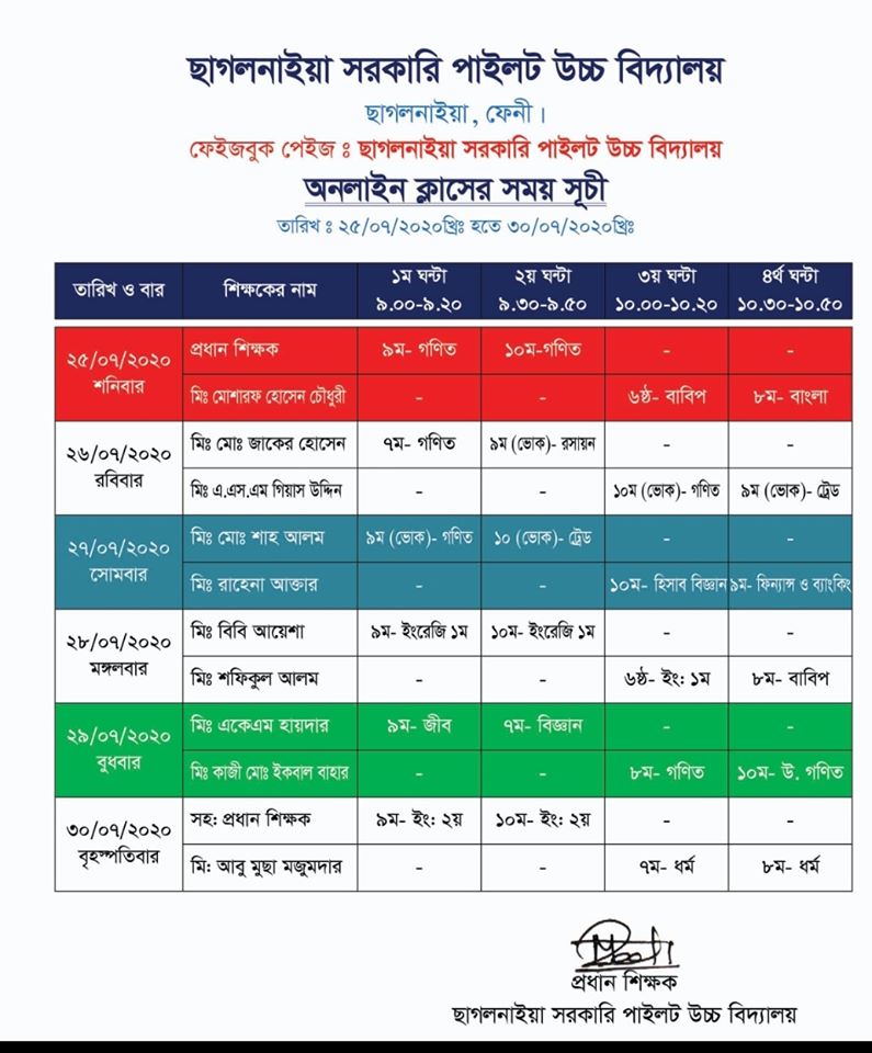 অনলাইন ক্লাস রুটিন